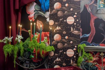I led the project as art director/designer, acted as GC/PM, fabricated and installed all of the custom furniture, fixtures, wallpaper, and finishes, and created a 28' x 9' custom wall mural using an original collage of found ephemera scanned and printed to room scale. I also collaborated to redesign the website, and contributed video, photography, social media content, and custom sound design.
